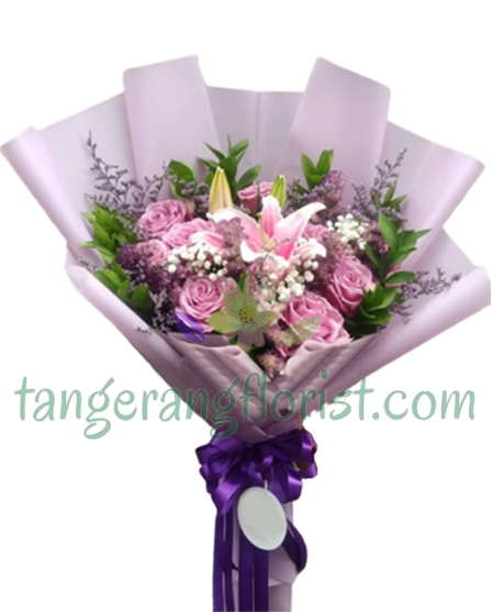 - Dibungkus dengan Kertas Pembungkus Ungu Muda, Dipadukan dengan Pita Ungu